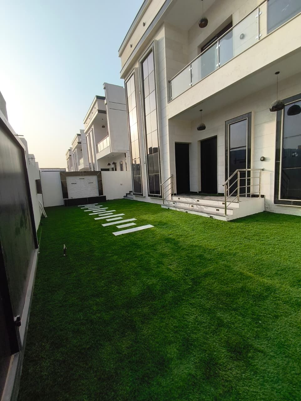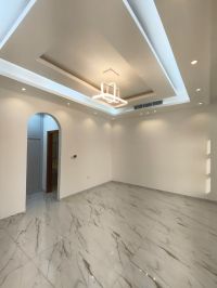 For annual rent Brand new villa in Al Bahia area. 5 master bedrooms, living room, Majlis, and maid's room. Includes indoor and outdoor parking. Luxury finishing. Price 150000 (currency unspecified) 4 installments Security deposit (check required)
