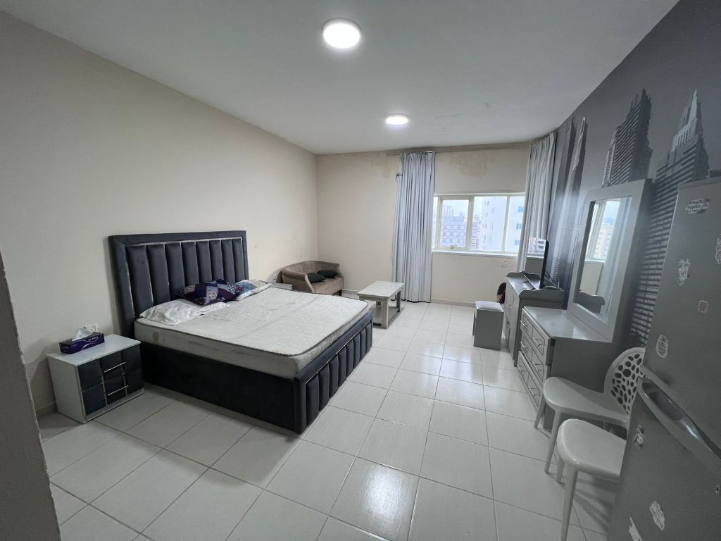 One - bedroom apartment with a living room for rent in Al Naeemia 2 - Ajman, opposite Al Hout Center and near the busy Kuwait Street. fully furnished in a new building with central AC. rent AED3700, including all bills, internet, and maintenance, excluding gas