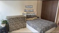 One bedroom and living room with a veranda overlooking Ajman and Sharjah seas. Two bathrooms. American - style kitchen. Furnished. Master bedroom Double bed with full bedding, two wardrobes, and a table. Living room Sofa set, TV, single bed, wardrobe, table, and built - in cabinet. Kitchen Refrigerator, washing machine, oven, microwave, blender, and grill. Complete cooking and dining equipment. A fixed