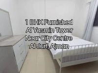 Furnished one - bedroom apartment for monthly rent in Ajman, Al Yasmin Towers, behind City Centre Ajman. First occupancy. monthly rent is AED3600 inclusive of electricity, water, sewage, internet, and parking. AED500 security deposit, refundable upon checkout. Available tomorrow, God willing