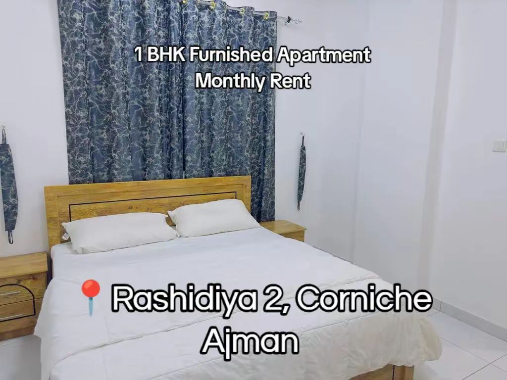 One - bedroom apartment in Ajman, Rashidiya 2 area, behind Rashidiya Ladies Park, near Falcon Towers, 10 minutes from Ajman Corniche. Newly furnished one - bedroom apartment with balcony, central air conditioning, and two bathrooms. monthly rent is 3800 Dirhams inclusive of all bills, internet, and maintenance. A refundable security deposit of AED500 is required upon departure