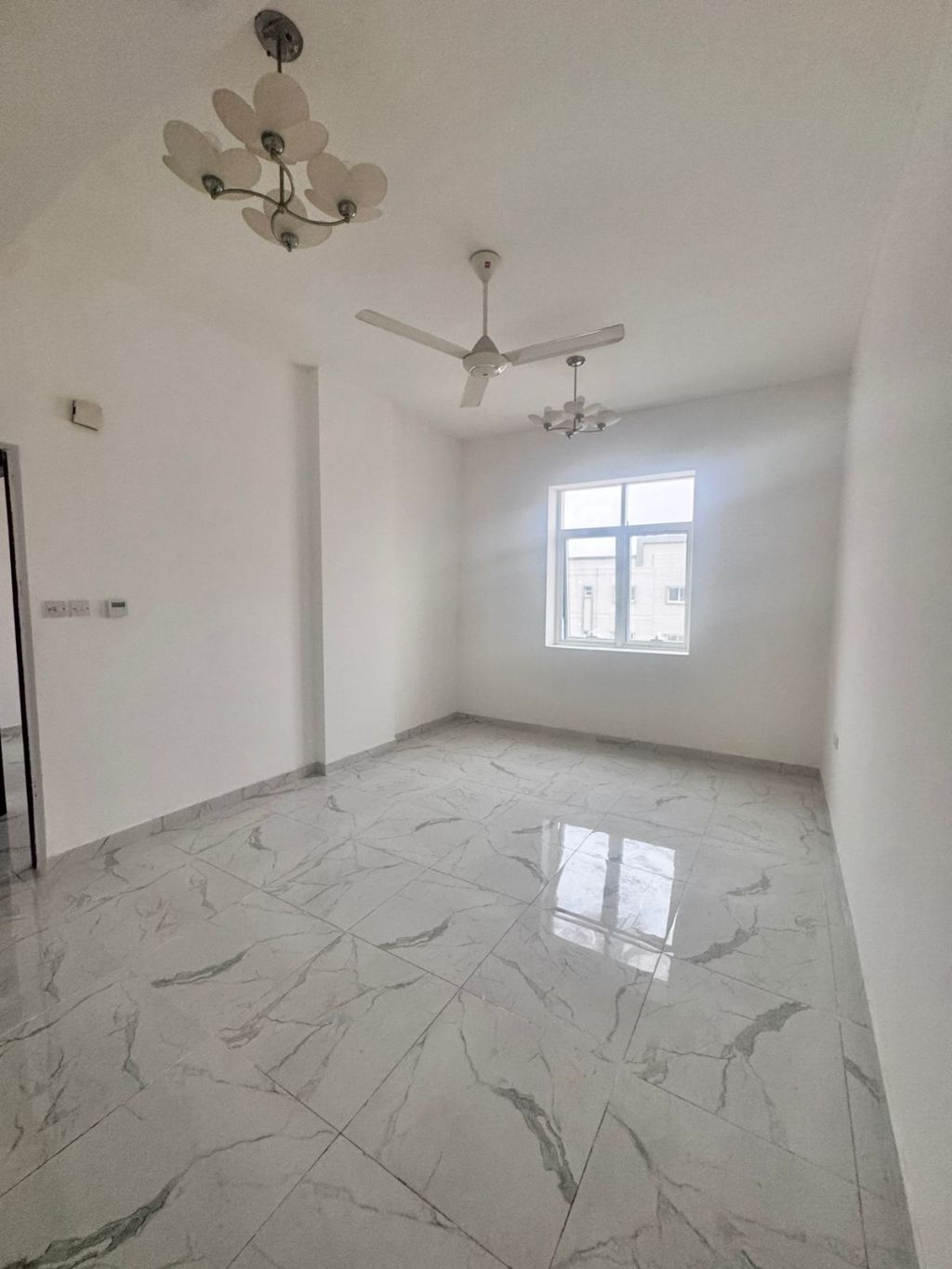 One bedroom and living room for annual rent in Ajman Master bedroom with external bathroom Central air conditioning Separate living room Large area No balcony Al Al Mwaihat 2, near Dubai exit Price 30000