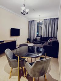 One bedroom and living room apartment in Residence Towers, Ajman Corniche, direct sea view. Price AED65000 furnished, with parking. Flexible payment options available. For inquiries