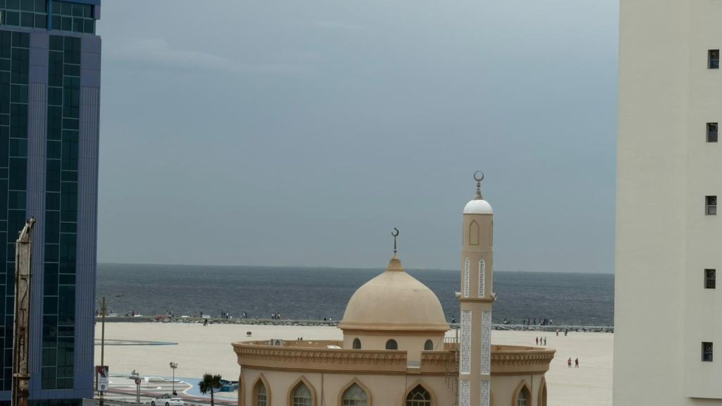 Annual rent apartment in Al Nakheel 1, Ajman, second building from Ajman Corniche with a beautiful sea view, in a prime location close to all services. The apartment consists of one bedroom and a living room with a spacious and comfortable layout, including a master bedroom, 2 bathrooms, and a balcony with a nice view. It features central air conditioning for year - round comfort and includes sandy parking