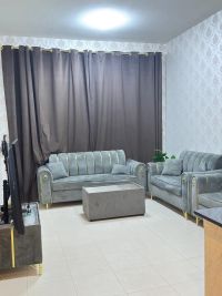 For monthly rent in Ajman - City Tower, Khalifa Street Furnished one - bedroom apartment with a living room, clean and tidy furniture, located مباشرة on Khalifa Street. Close to Safeer Mall and opposite Grand Mall, and near all services. The apartment consists of one bedroom, a living room, 2 bathrooms, a balcony, and an open view. Fully equipped, offering comfortable and quiet living, including all