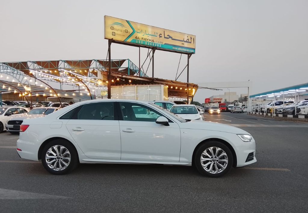أودي A4، محرك V4 سعة 1.4 لتر، 30 TFSI، موديل 2018. السعر 46,000 درهم إماراتي. المسافة المقطوعة 186,000 كم. المواصفات خليجية. اللون الخارجي أبيض / اللون الداخلي بني. المميزات: مصابيح LED نهارية DRL، مصابيح أمامية أوتوماتيكية، عجلات سبائكية (ربما 17 بوصة في الفئة الأساسية)، مرايا جانبية كهربائية قابلة للطي ومزودة بإشارات جانبية. اللون أبيض معدني أو أبيض.