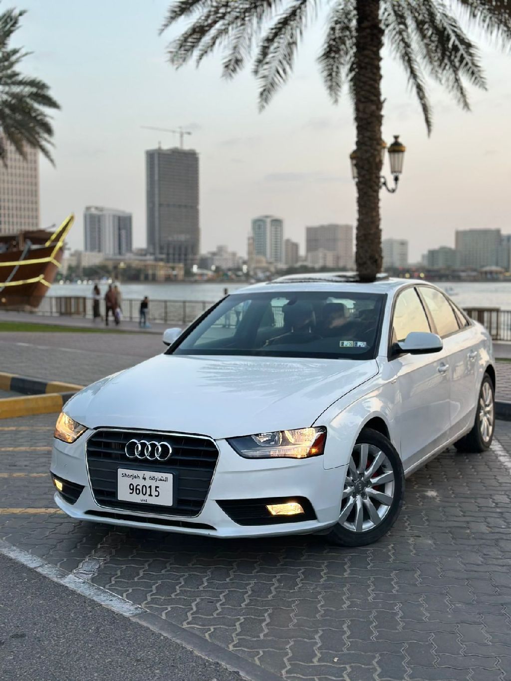 أودي A4 موديل 2014، فل أبشن، فتحة سقف، تشغيل بالبصمة، شاشة تحكم، مثبت سرعة، فرامل كهربائية، كراسي كهربائية، مكيف، ثلاجة، زجاج كهربائي، سنتر لوك. رنقات السيارة أصلية، كل شيء فيها وكالة. رقم الشاسيه: WAUBFAFL 4EN002825. السعر: 20,000 درهم. التواصل على الرقم.