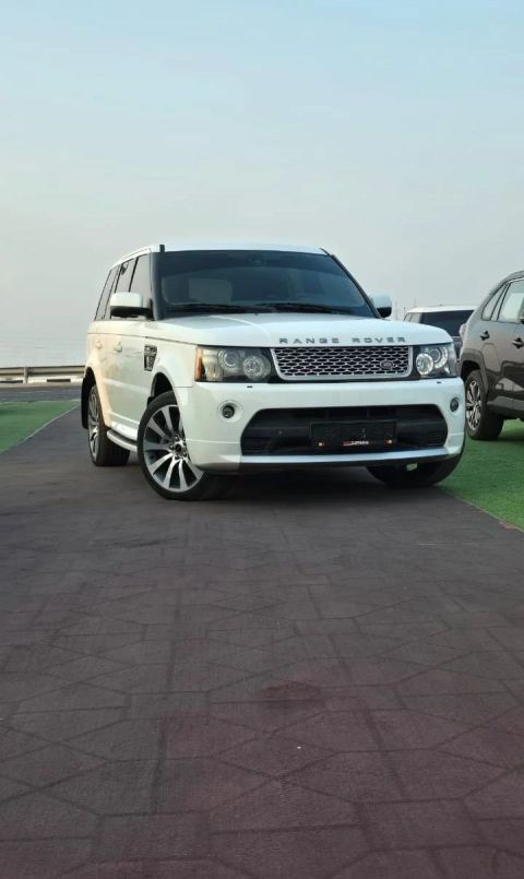 Range Rover Sport Autobiography 2012, GCC specs, price 28,000 AED, mileage 170,000 km. Features include leather seats, panoramic roof, fingerprint start, hydraulic suspension, radar, 360-degree camera, refrigerator, blind spot monitoring, multiple driving modes, touch screen, British luxury and performance.