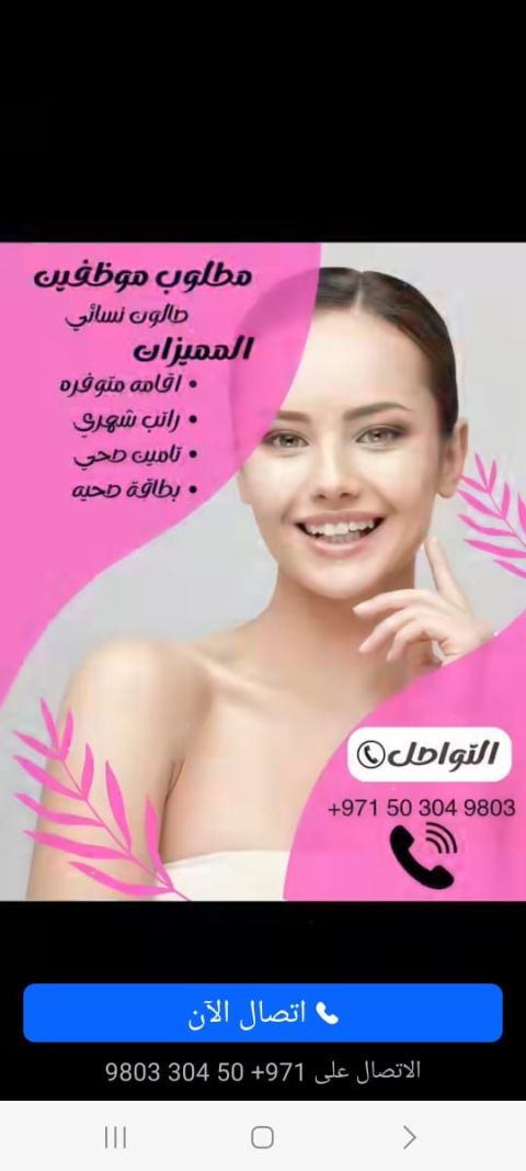 We need a comprehensive hairdresser in Ajman kornich for hair, nails, eylashes, and waxing who has experience in the fieled and can determine the salary after the interview