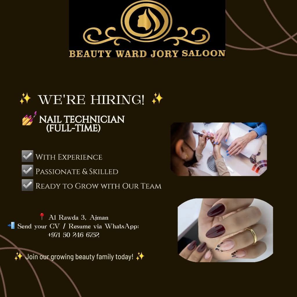 We are hiring experienced Nail Technicians and Hair Stylists to join our salon team. Location Rawda 3, Ajman Send your CV with portfolio