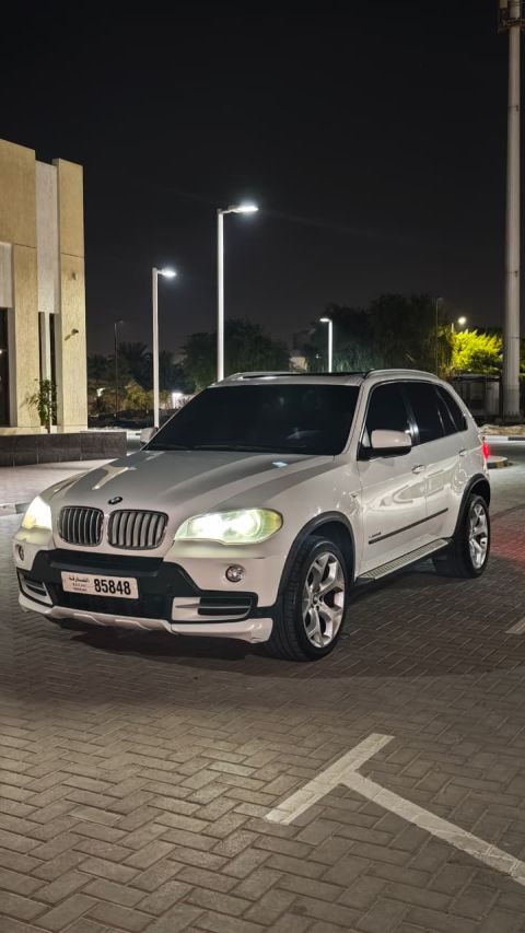 For sale: BMW X5 E70 model 2010 with 300,000 km mileage. White color - 8 cylinder full specifications - Gulf specifications number 1, no accidents. 5 cameras, head-up display, elegant saffron interior. Engine fully serviced. The car is very clean and has no issues, stable on the road and very smooth. Reason for sale: buying a new car. Location: Ajman.