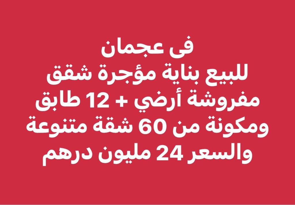 في عجمان للبيع بناية مؤجرة شقق مفروشة أرضي + 12 طابق ومكونة من 60 شقة متنوعة والسعر 24 مليون درهم