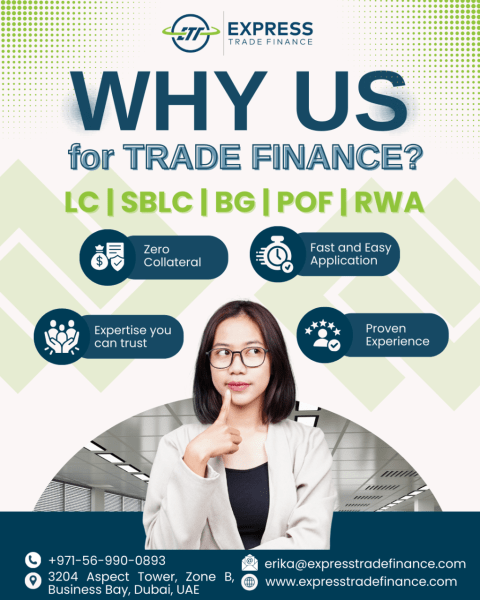 Big projects Trade deals We’ ve got you covered LC SBLC BG RWA POF - Zero Collateral Fast, simple, and reliable. Message us today to learn more Call/ Message 971 - Email Website