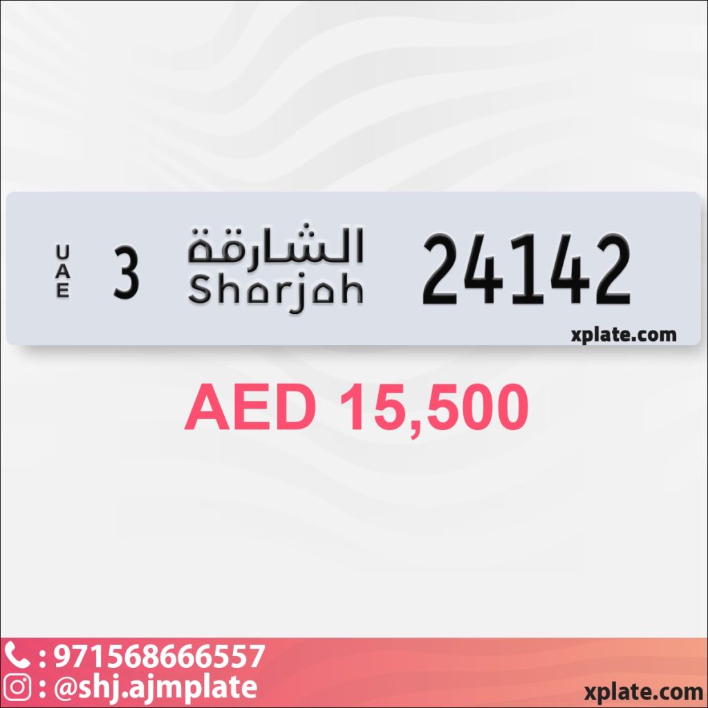 تميز بقيادتك، رقم مميز الشارقة 24142 كود 3 مقفول بسعر 15500 درهم