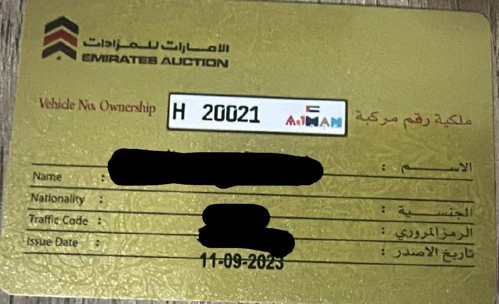 Distinctive number for sale in Ajman 17000 dirhams H 20021