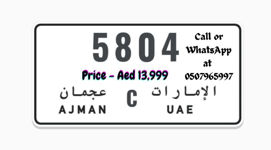 804 Special Ajman plate 5804 code C for sale Special Plate for Imran Khan Lovers (Qaidi No. 804) Old Code and with Zero 0 in Middle. For Price Serious Buyers please call or WhatsApp at this