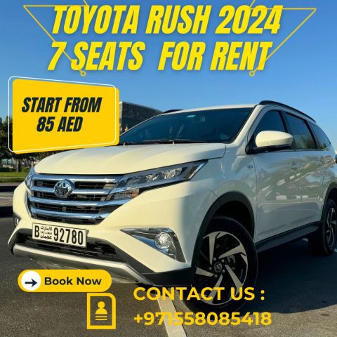 تويوتا راش 7 مقاعد موديل 2024 متاحة للإيجار شهري أسبوعي يومي بأفضل الأسعار شامل الضريبة وتأمين شامل للحوادث