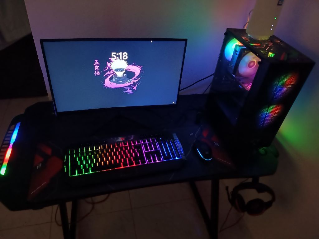متوفر سيت أب جيمينج كامل استعمال 3 شهور فقط، وبوكسات القطع موجودة وساري الضمان، السيت أب شامل (تجميعة 5060 + شاشة 180 HZ + كيبورد + ماوس + سماعة مع مايك + طاولة مع ليت RGB + كرسي جيمينج. السعر 3700 درهم