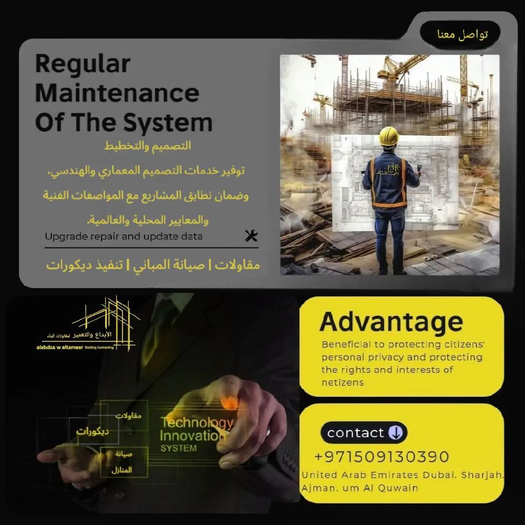تصميم وتنفيذ أعمال الديكور الداخلي والخارجي أعمال الكلادينغ للجدران تصنيع الأبواب الخشبية والمطابخ تركيب الأرضيات سيراميك ورخام أعمال الكهرباء والصحية تركيب كاميرات والسمارت سيستم والانتر كام أعمال الاكساء الخارجي وتركيب الحجر أعمال اللاند سكيب وتركيب المظلات والانترلوك أعمال الألومينيوم والنوافذ وجلسات خارجيه