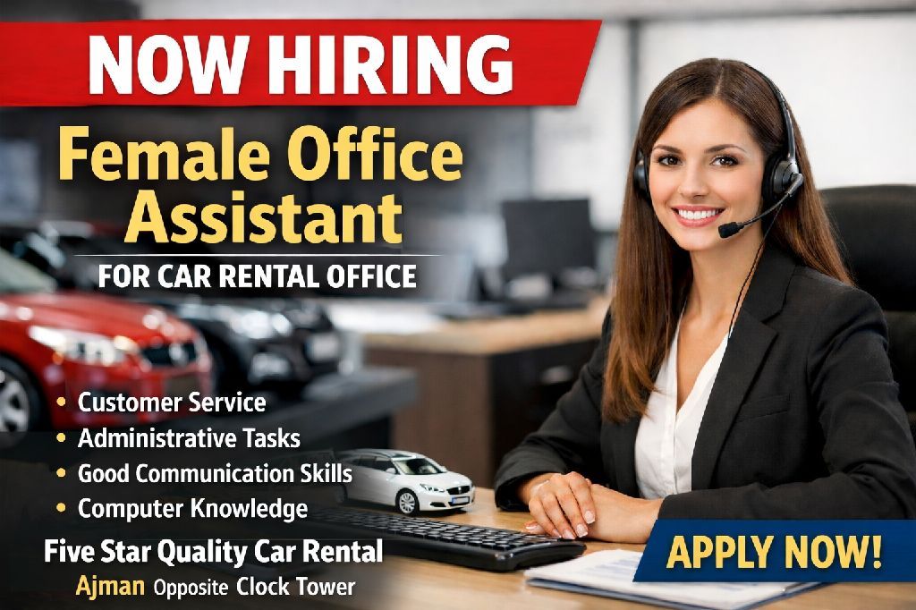 Customer Service Representative Needed - Car Rental Office (Ajman) A female customer service representative is needed for a car rental office in Ajman, opposite the Clock Tower. Requirements UAE driving license, valid and transferable residency visa, presentable appearance, speaks English. Salary 3000 and percentage