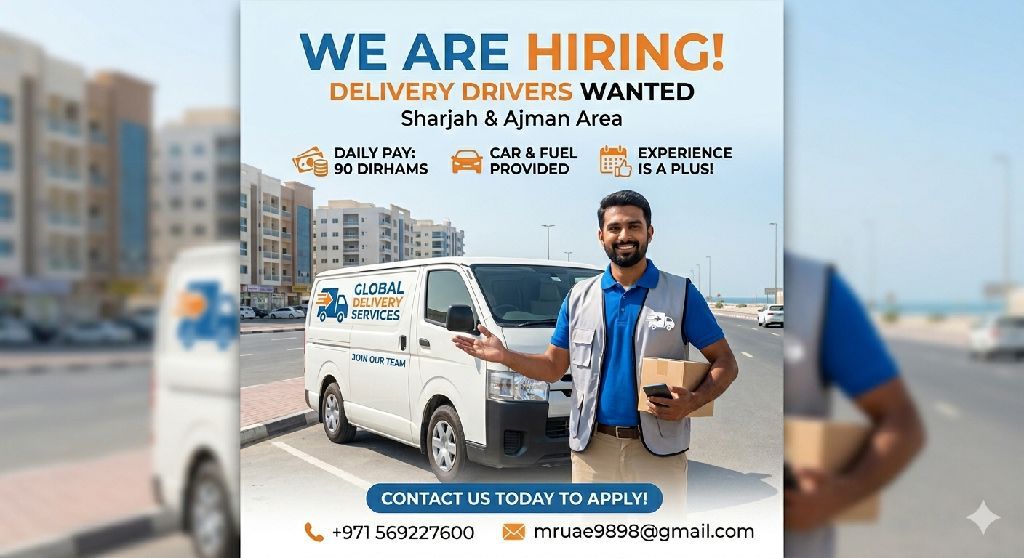 We are hiring in the Sharjah and Ajman area Join our delivery company with daily pay of 90 dirhams. We provide the car and fuel. Experience is a plus Contact us today to apply
