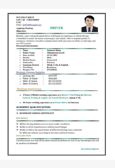 I am an experienced and reliable professional driver with 29 years of driving experience in the UAE. I hold a valid UAE driving license and have a pickup vehicle available for work. Over 15 years of safe driving experience Excellent knowledge of UAE roads and traffic rules Punctual, honest, and hardworking Can handle goods delivery, staff transport, or personal/ family driving I am curren