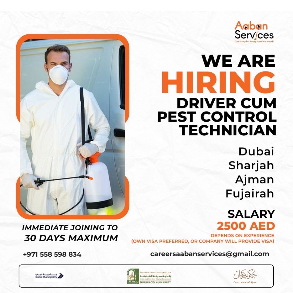 Need pest control technician + driver salary 2000 t0 2500 12 hours duty in Ajman Nuimiya 1