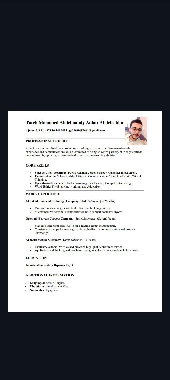 شاب مصري العمر 24 ابحث عن عمل في مجال السيلز والمبيعات لدي اقامة والشكر الى الجميع