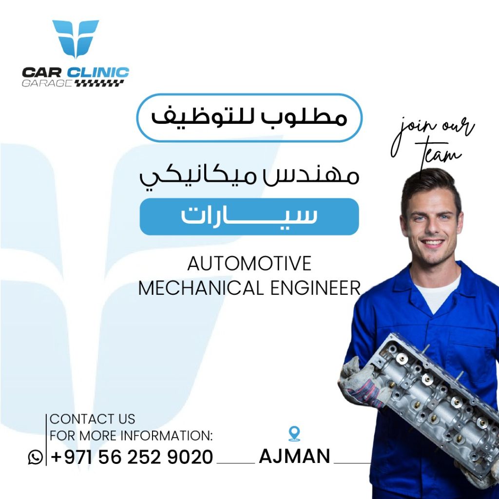 Hiring Mechanical Engineer Company Car Clinic Garage Location Ajman Industrial area 2, UAE Car Clinic Garage is looking for a skilled Mechanical Engineer with experience in automotive diagnostics, repair, and maintenance. Requirements Degree/ Diploma in Mechanical or Automotive Engineering Experience in car repair & diagnostics Strong technical and problem - solving skills Contact Details