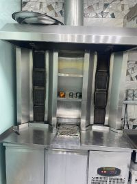 معدات مطعم للبيع بحالة جيدة مكينة شاورما فيها ثلاجتين مع أسياخها وهود عرضه 3 متر وحوض دبل وطاولة ستيل