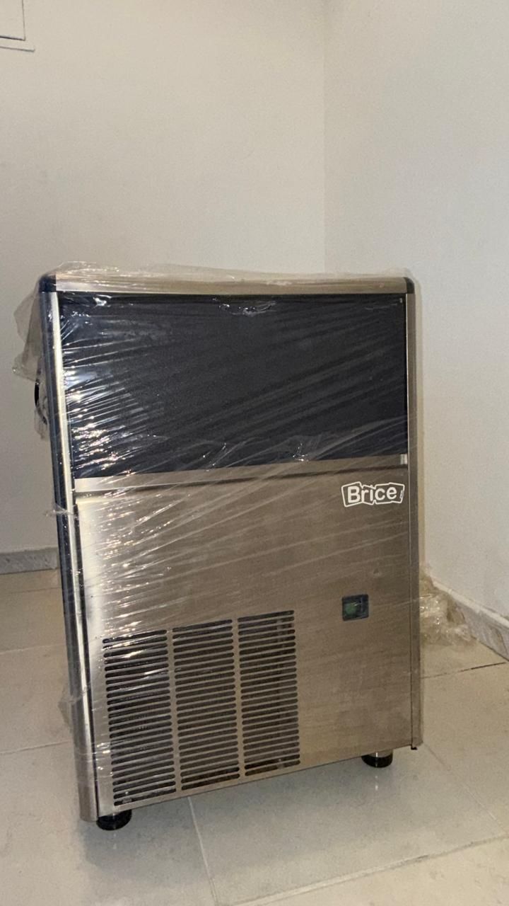 For sale A Brice ice maker in excellent condition, still wrapped in plastic. This machine is perfect for use in restaurants, shops, or homes that require large quantities office continuously. Its durable metal design ensures long - lasting performance and reliability