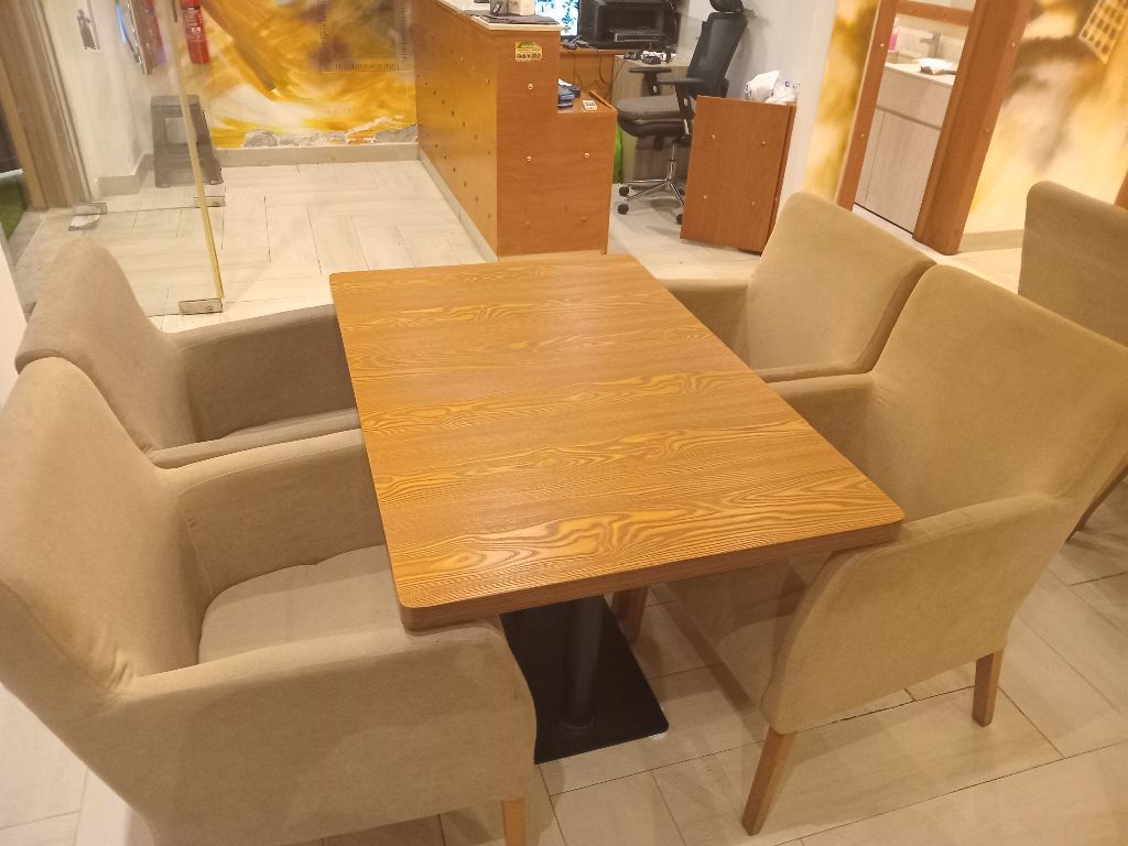 A fantastic opportunity for restaurant and cafe owners Restaurant chairs and tables for sale in Ajman in excellent condition. Sturdy and practical wooden tables and comfortable, stylishly designed chairs suitable for restaurants and cafes. Clean and ready for immediate use. A very attractive price. Location Ajman. For inquiries, please call