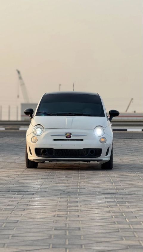 Fiat 500 Abarth 2015 with Gulf specifications, sporty performance, and an elegant hatchback design with distinctive Italian styling and a powerful turbo engine. The 1.4L turbo engine with 6 - speed automatic transmission, sport leather seats, panoramic roof, screen with Bluetooth/ USB/ Apple CarPlay/ Android Auto, sensors + 360 camera, cruise control, and comprehensive safety systems including ABS, ESP