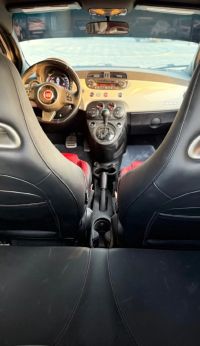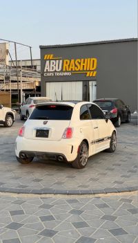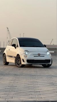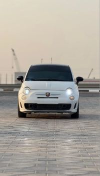 Fiat 500 Abarth 2015 with Gulf specifications, sporty performance, and an elegant hatchback design with distinctive Italian styling and a powerful turbo engine. The 1.4L turbo engine with 6-speed automatic transmission, sport leather seats, panoramic roof, screen with Bluetooth/USB/Apple CarPlay/Android Auto, sensors + 360 camera, cruise control, and comprehensive safety systems including ABS, ESP, and airbags. Front and rear LED lights. 1300 AED monthly with 20% down payment or 1600 AED monthly without down payment, including insurance and registration.