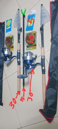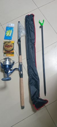 Fishing rod for sale, good quality,2.1 meters. Rod and reel price AED49 each/ AED98 for both (excluding accessories) hooks, line, stand) are AED30 each