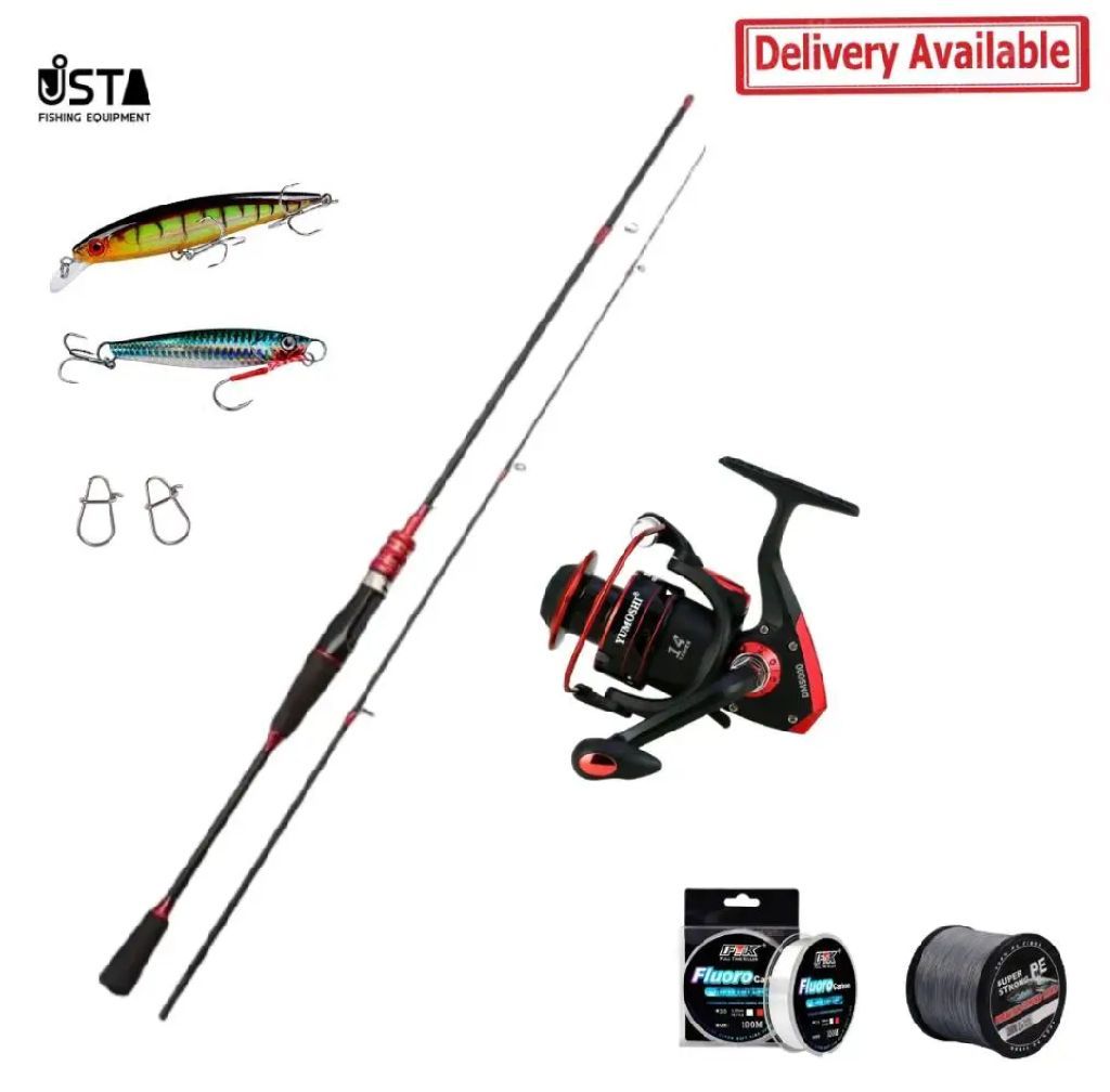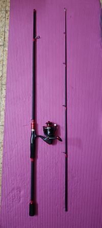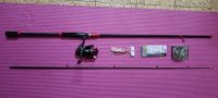 Beginners spinning set, 2.4m rod and 4000 series reel, braided line, jug & lure with snaps، price AED105