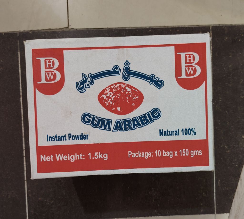 صمغ عربي (صمغ هشاب سوداني) للبيع جملة، وبالقطعة وزن العبوة 150 جرام سعرها 10 درهم، الكرتونة بها 10 قطع