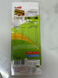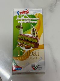شوكولاته بحشوة الكنافة وكريمة الفستق الغنية نسبة الكاكاو 41% الحشوة Kunafa & Pistachios Filling الجودة Premium Quality بلد الصنع الامارات مناسبة للبقالات، محلات الحلويات، الهدايا الفاخرة وتجار الجملة الكمية المتبقية 2000 حبة العبوة 150 كجيم السعر 5 درهم للحبة تاريخ الانتهاء 14012027 جاهزة للتسليم الفوري داخل الامارات