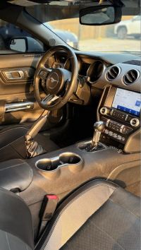 Ford Mustang EcoBoost 2020 - American Specifications. Turbo 4-cylinder 2.3L engine, 6-speed automatic transmission. Touch screen with Apple CarPlay/Android Auto, push-button start and remote start. 360-degree camera + front and rear sensors, blind spot warning and lane departure warning. Heated seats and steering wheel, panoramic sunroof and LED lights. Anti-lock braking system (ABS) and traction control. Financing available: 1,300 AED monthly with 20% down payment, 1,600 AED monthly without down payment, including insurance, registration, and inspection.