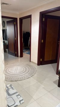 Two bedrooms and an ultra - luxury living room for sale in Al - Horizon Tower, area of 1700 SqFt, with furniture and decorations. The apartment is vacant and ready for occupancy. 3 bathrooms, 2 balconies, open view, private parking. The tower has a garden, gym, and swimming pool. The price is 590000 final
