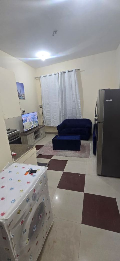 Furnished apartment for monthly rent in a prime location near the Governor's Roundabout, second row from Ajman Corniche. This upscale and vibrant area is just steps from the sea, restaurants, cafes, and public services. The apartment consists of a bedroom, living room, two bathrooms, and an open - plan kitchen with a modern design and very clean finishes. It offers natural light and a comfortable space