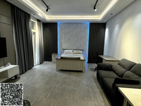 Furnished apartment for monthly rent in a prime location near the Governor's Roundabout, second row from Ajman Corniche. This upscale and vibrant area is just steps from the sea, restaurants, cafes, and public services. The apartment consists of a bedroom, living room, two bathrooms, and an open - plan kitchen with a modern design and very clean finishes. It offers natural light and a comfortable space