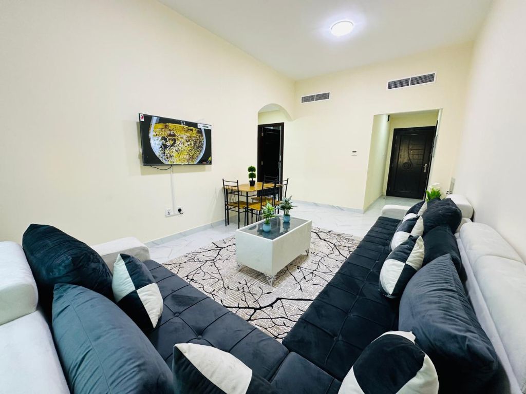 شقة غرفة وصالة رقم 301 عجمان منطقة الراشدية 3 خلف جراند مول بالقرب من حديقة الراشدية للسيدات شقة غرفة وصالة فرش جديد بالكامل حمامين - بالكونة - تكييف مركزي الإيجار 4300 درهم شامل كافة الفواتير مع الانترنت والصيانة عدا الغاز تأمين مسترد عند الخروج 700 درهم