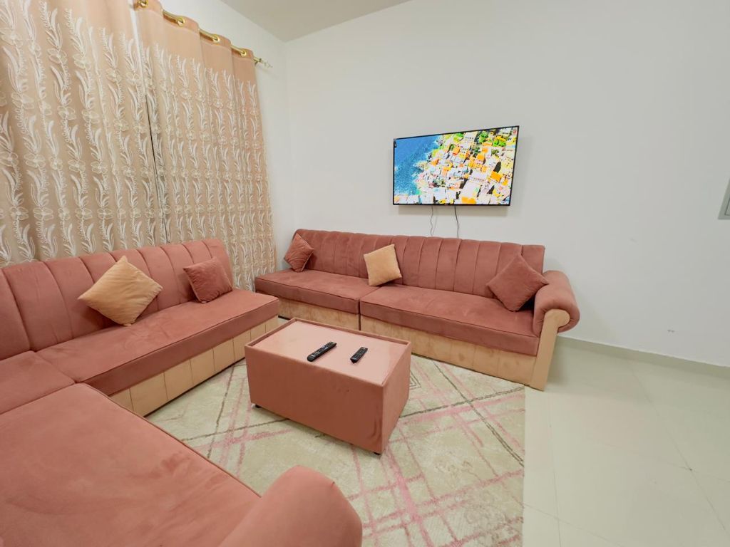 شقة غرفتين وصالة مفروشة للإيجار الشهري في عجمان النعيمية 1 - خلف مستشفى ثوم بي سهل المخرج الى دبي والشارقة شقة غرفتين وصالة فرش جديد بالكامل حمامين - بالكونة - تكييف مركزي الإيجار الشهري 5000 درهم شامل جميع الفواتير مع الانترنت والصيانة (عدا الغاز) التأمين 700 درهم مسترد عند الخروج