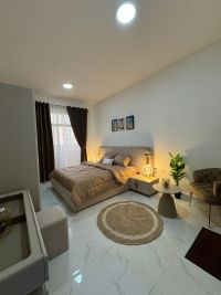 شقة أول ساكن غرفة وصالة مع حمامين وبلكونه مفروشه فرش VIP - متاحه للسكن يوم 5 يناير الإيجار الشهري 4800 دهم تواصل معنا للحجز