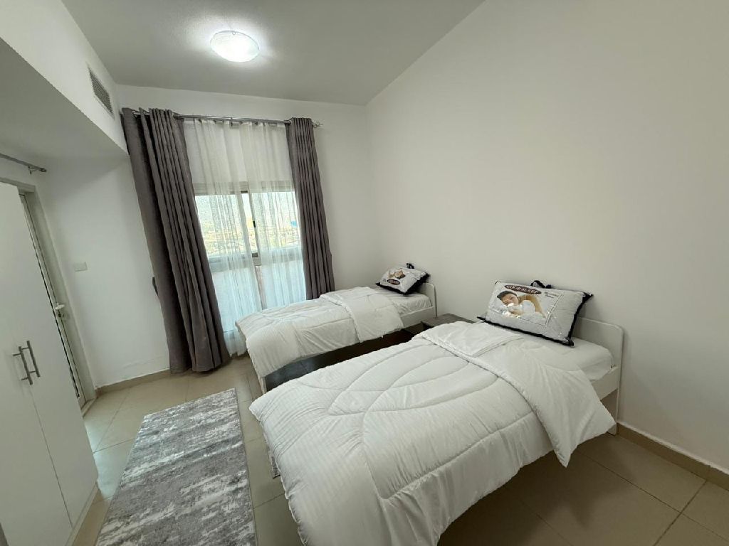 غرفتين وصالة مفروشة للإيجار الشهري أول ساكن - أبراج الشروق النعيمية 1 - نهاية شارع الشيخ خليفة على شارع الاتحاد - قريب مخرج مدينة محمد بن زايد غرفتين ماستر 3 حمام مطبخ منفصل بلكونه كبيرة شامل جميع الفواتير + موقف
