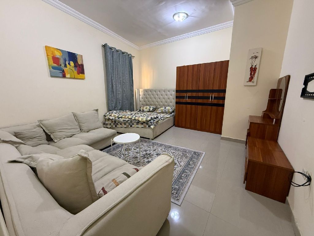 غرفة وصالة منعزلة للإيجار الشهري ثاني صف من كورنيش عجمان خلف كافية ذكريات متاح يوم 5