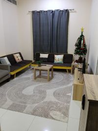 غرفة وصالة مفروش للإيجار الشهري فرش فندقي مرتب ثاني ساكن بناية عائلات النعيمية شارع الكويت بلكونه + 2 حمام المطبخ مجهز بالكامل عرض رمضان شامل الفواتير