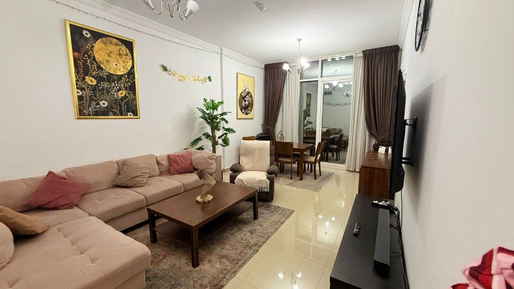 غرفتين ماستر وصالة 3 حمامات بالكونة باطلالة مفتوحة طابق مرتفع باركينج خاص موقع حيوي وقريب من جميع الخدمات الإيجار 6000 درهم التأمين 1000 مسترد عند الخروج
