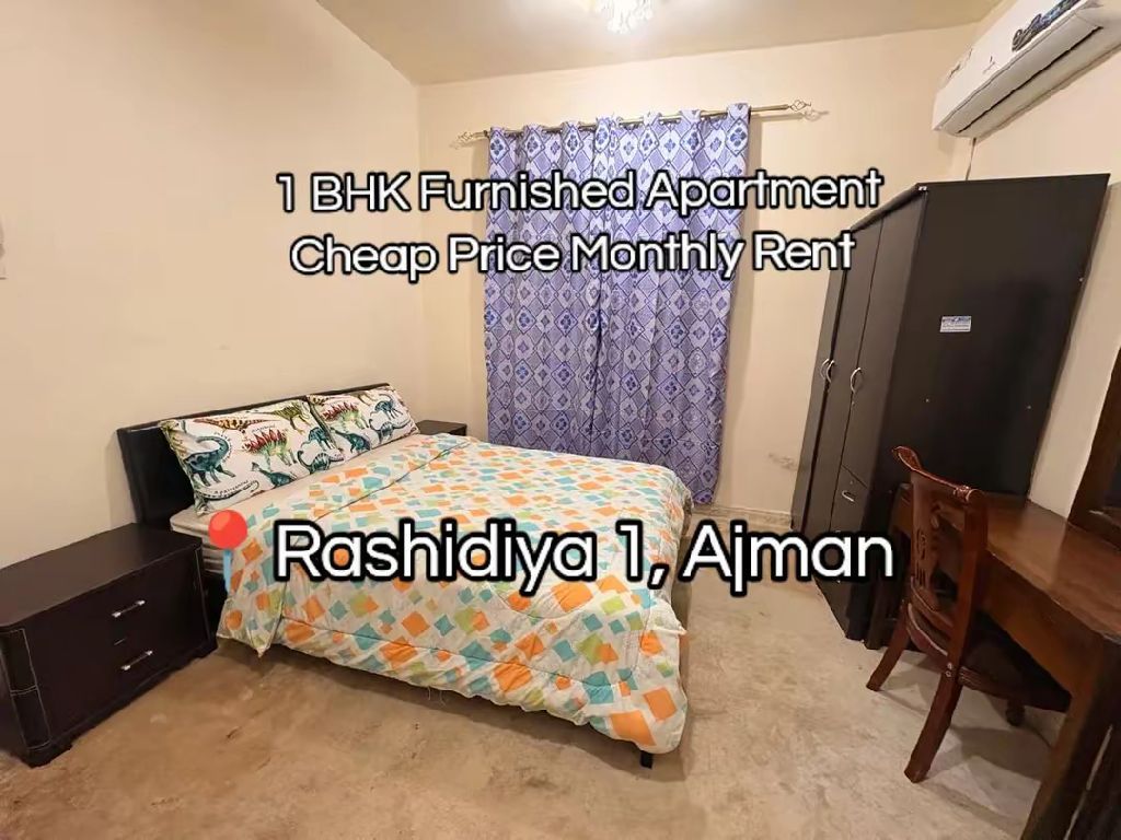غرفة وصالة مفروش للإيجار الشهري إمارة عجمان الراشيديه 1 بجوار جميع الخدمات والمطاعم والكافيهات ومحطة الباصات شامل جميع الفواتير والانترنت والباركينج ترابي واسع الإيجار 3200 التأمين مسترد عند الخروج 500